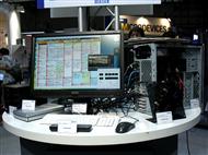 6枚のチューナーカードと2台のチューナーユニットを同時接続したデモ用PC(写真=左)。6番組同時録画時のCPU使用率は15〜20%程度を維持していた(写真=中央)。多チャンネル同時録画デモ用システムでは、同社の24.1型ワイド液晶ディスプレイや、録画した映像の書き出しに使うBlu-ray Discドライブも展示している(写真=右)なお、同社は「スカパー!HD」の録画用NASやDMM対応のセットトップボックス、iVDR対応のポータブルハイビジョンプレーヤーなども出展し、PC周辺機器の枠を超えたハイビジョン関連製品の豊富なラインアップをアピールしている。