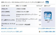 まず、Windows エクスペリエンス インデックスは、基本スコアがゲーム用グラフィックスのテスト結果を反映した4.2となった。さらにCPU、メモリ、プライマリハードディスクの各テストでは満点の5.9を叩き出しており、ことWindows Vistaを利用する環境としては、評価機の構成は非常に優秀なものと判断できる。