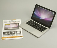 今回取り上げるのは、レイ・アウトが販売している「RT-MBFS1/AG」だ。MacBook用のAGフィルムは、パワーサポートやMicro Solutionなども発売しているが、レイ・アウトの製品は実売1980円とこの中では最も安い。また、スペックシートを見ても、低反射処理を施したAG層とキズなどから液晶パネルを保護するハードコート層、そして液晶面に自己吸着するシリコン層の3層構造からなる一般的なもので、ほかの製品と比べ遜色はない。もちろん、アルミMacBookの黒い額縁部分までカバーしているし、カメラ穴の位置まであわせた“新型MacBook専用”のフィルムだ。さらに、フィルムを張り付ける際にフィルムと液晶面とのあいだの空気を押し出すためのヘラも付属する。