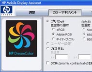 17型ワイドの液晶ディスプレイの解像度は、フルHD対応の1920×1200ドット(WUXGA)だ。映画会社のドリームワークスSGKとHPが共同で開発したカラーマネージメント規格「HP DreamColor」に対応している。その特徴としては、RGB LEDバックライトの採用による豊かな色と深い黒の実現、Adobe RGB/sRGBの色空間をサポート、800:1のハイコントラスト、水平160度/垂直120度の広視野角、HP Mobile Display Assistantによる色空間や色温度の設定が可能な点などが挙げられる。印刷業界の標準となっているAdobe RGBに対応していることに加え、同じくDreamColorに対応した液晶ディスプレイ「HP DreamColor LP2480zx」やプリンタ(HP Designjetシリーズ)との間で印刷やデジタルソースの表現を簡単に統一できるのは強みだろう。