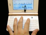 インターネット接続は内蔵IEEE802.11b/g対応の無線LANのほか、USB接続でイー・モバイルやNTTドコモ、ソフトバンクモバイル、ウィルコムなどのデータ通信端末も使用できるようキャリア協力により順次ドライバを用意する。残念ながら、ワイヤレスWAN内蔵PCのようにUSIMを差して使用する3Gデータ通信機能は内蔵せず、UQ WiMAX端末の対応予定はない。説明員によると「モバイルWiMAXは、次のモデル(出るならPC-Z2?)での対応になりそう」とのことだ。