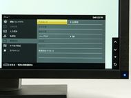 OSDのメインメニューには、輝度/コントラスト、自動調整、入力信号、色設定、画面設定、その他の設定、カスタマイズ(ショートカットの設定)といった項目を用意。色設定のモード選択では、グラフィックス(PC用)とビデオ(映像機器用)の2種類が選択可能だ。グラフィックスモードでの画質モードは標準、マルチメディア、ゲーム、暖色、寒色の5種類とユーザーカスタムモードを1つ用意する。ユーザーカスタムではRGB各色の増減による調整が行える。一方のビデオモードはムービー、ゲーム、スポーツ、自然色の4種類を備える。