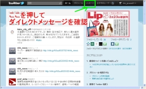 自分宛に届いたダイレクトメッセージは、自分のTwitterページから見ることできます。ページの黒い帯にある「メッセージ」と書かれたボタンをマウスで押すと、受け取ったダイレクトメッセージが、送った相手ごとに並んで表示されます。できるだけ定期的に確認するようにしましょう。