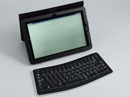 付属のBluetoothキーボードを使えば、通常のノートPCのように文字入力が快適に行える(写真=左)。付属の革製キャリングケースはフラップで表と裏をすっぽり覆うタイプだ(写真=中央)。表面のカバー裏側には、縦置き用と横置き用のフットスタンドが設けられている(写真=右)基本システムは、インテルのモバイル向けCore i5を採用しているのがポイント。Sandy Bridgeこと第2世代Core iによるHurom Riverプラットフォームではなく、1世代前となるArrandaleのCore iを用いたCalpellaプラットフォームだが、iPadやAndroidタブレットを大幅に上回る性能を備えるのはもちろん、Atom搭載機が目立つWindowsピュアタブレットPCの中でもハイスペックな仕上がりだ。
