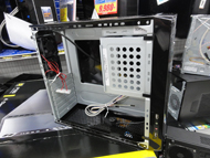 サイズから登場したのは、136(幅)×385(奥行き)×351(高さ)ミリのスリムケース「EVE」。電源ベイと5インチベイ、3.5インチシャドウベイをそれぞれ一基用意しており、このサイズでATXマザーが搭載できるのが特徴だ。価格は4000円弱。