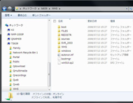 Web File ManagerからISOファイルを選択し、右クリックメニューから「ISOをマウント」を選んで仮想フォルダにマウントする(画面=左)。エクスプローラからは通常の共有フォルダのように見える(画面=中央)。ブータブルメディアイメージは、必要となったときにDVD-RW/CD-RWに焼くか、光学メディアエミュレーション機能を持つUMA-ISOなどにコピーして利用する(画面=右)Copyright © ITmedia, Inc. All Rights Reserved.