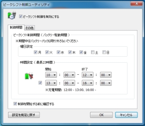 省電力が求められるイマドキのノートPCでは、いかに強力な性能を有するクアッドコアCPU搭載のレッツノート B10でも高度な電力管理機能は必須だ。当然ながら、ピークシフト機能に対応したユーティリティを導入して、供給電力の自動切換えやスケジュールの設定が可能になっているCopyright © ITmedia, Inc. All Rights Reserved.