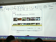 同じデバイスからビジネス用のアカウント(写真=左)と、プライベート用のアカウント(写真=中央)でアクセスすると、それぞれ異なるドキュメントが並ぶ。このように、次期 Microsoft Officeではログインしたアカウントごとにユーザー情報を関連付けているので、同じアカウントでアクセスすれば、異なるデバイスから同じドキュメントと設定が利用できる。オンラインサービスとの連携も可能で、説明では、Bingで検索した動画をOneNoteに貼り付ける処理を紹介した(写真=右)ソーシャルネットワークサービスとの連携では、組織内ソーシャルにおける活用を取り上げている。公開範囲を設定した情報発信が可能であることや、フォローするユーザーのアクティビティの把握、「Like」「Best Anser」などコミュニティーを盛り上げる機能など、既存の主要なサービスに相当する機能を持つコミュニティーサイトが用意することを示した。