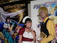 家族向け物販イベントという性格からか、“おねえさん”はほとんどいなかった。IEM会場に隣接するブースでは、ゲームつながりでコスチュームプレイヤーコミュニティーがブースを構えていたりする。ほかは、季節柄定番のサンタ娘、そして、なぜかLG Oputimus天使を発見した