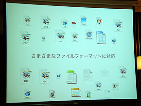 3つ目はファイルのプレビュー機能。WordやExcel、PowerPointといったオフィス系ソフトで作成したファイルや、IllustratorやPhotoshop、InDesignなどAdobe系ソフトで作成したファイルを共有した場合、対応ソフトを起動しなくてもプレビュー画面で中身を確認できる。プレビュー画面は拡大して細部まで見ることができるので、対応ソフトをインストールしていないPCとデータをやりとりするときにも便利だ。