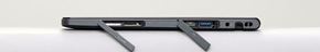 タブレット単体での本体サイズは309.6(幅)×199.3(奥行き)×11.9(高さ)ミリ、重量は約980グラム(実測値は967グラム)。防水・防じんのボディにCore i5-4200U(1.6GHz/最大2.6GHz)と冷却ファン、12.5型フルHD液晶ディスプレイを搭載しているため、このサイズになる。液晶ディスプレイは、10点マルチタッチ対応の静電容量式タッチパネルと、1024段階の筆圧検知に対応したワコム製の電磁誘導式デジタイザも備えている。画面下のWindowsボタンはタッチセンサー式で、押すと振動する