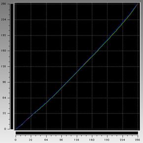 液晶ディスプレイの表示も計測したところ、色温度は7490Kと業界標準のsRGB(6500K)より少し高めだ。ガンマ補正カーブはRGBの各線がそろっていて色ズレはないが、中間階調がやや下向きに補正されている。これは、少々白っぽい表示になることを意味しているが、目視の印象もこれに近い。