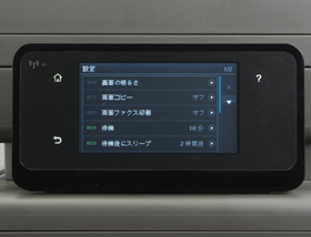 本体上部の左側手前部分に設けられる4.3型のディスプレイ部は、従来のHPプリンタを触ったことがある人なら、特に問題なく操作できるだろう。ほかのモデルでも採用されているタッチパネル式になっている。スマホを操作したことがあるユーザーなら、すぐに操作に慣れるはずだ。メニューの内容も日本語で分かりやすい。