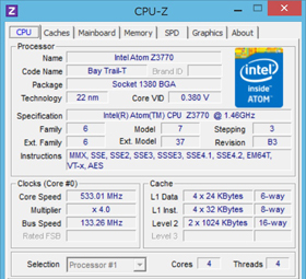 | CPU(コア数/スレッド数) | Atom Z3770(4/4) |