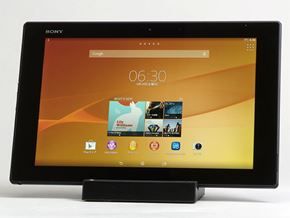 Xperia Z2 Tabletの下部にはアクセサリ接続用の端子を備えているが、この端子は防水用のカバーがないため、卓上ホルダなどへ手軽にセットできる。ただし、先代のXperia Tablet Z用クレードルとの互換性はなく、Xperia Z2 Tabletで利用できないのは惜しい。