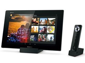 今回試用していないハンドセット機能付きBluetoothリモートコントローラー「BRH10」。タブレットを操作しながらの通話や、離れた場所から動画再生、写真のスライドショーなどが行える。NFCによるワンタッチ接続も可能だ。通話機能はNTTドコモが扱うモデル「SO-05F」のみの対応となる。リモコン用スタンドも付属する