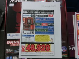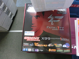 X99マザーで注目を集めていたのは、ASRockのE-ATXモデル「Fatal1ty X99 Professional」だ。価格は4万9000円弱。Ultra M.2と通常のM.2ポートを備え、同時に使用できるほか、LANには「Killer E2200」を採用している。メモリスロットは、通常のDDR4とECCタイプに対応する8基で、Haswell-EP世代のXeon E5(18コアタイプ)もサポートする。BUY MORE秋葉原本店は「28レーンタイプのCore i7を使っても、デュアルでM.2が使えるといった面白さがありますね」と話していた。