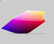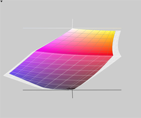 モノクロとカラーのグラデーションパターン。黒がより黒く見えるパキっとした表示で、中間階調域もRGBの入力と出力が1:1でそろったニュートラルなグレーバランスが期待できる。カラーパターン見ても彩度が高く、自然なグラデーションだ次に、先に作成したICCプロファイルを、Mac OS XのColorSyncユーティリティを用いて、それぞれsRGB、Adobe RGBのプロファイルと比較した。ここでも比較対象として、旧27型iMacの結果をあわせて掲載している。