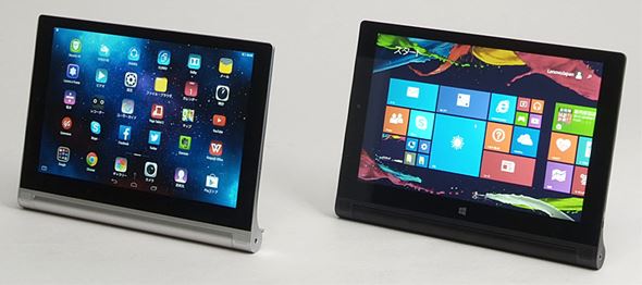 独自のボディデザインで利用シーンに応じた4つのモードが選択できるのは、YOGA Tablet 2最大の魅力だ。
