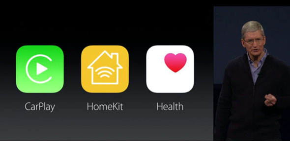 このiPhoneは、今後、我々の生活により密接に結びついていく。中でも2015年で重要になるのが、iPhoneと車との結びつきを強くする「CarPlay」と、あらゆるスマート家電との連携をスムーズにする「HomeKit」、そしてユーザーの健康情報を管理する「HealthKit」の3つだとクックCEOは紹介した。