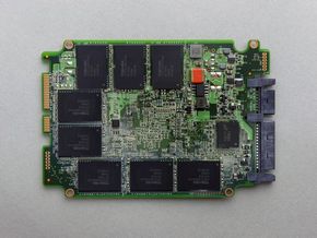 Vector 180 960Gバイトモデルの基板は、中央にコントローラを置き、その周囲をNANDフラッシュメモリチップが取り巻くレイアウトだ。