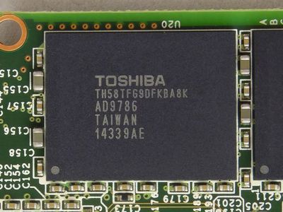 NANDフラッシュメモリチップに関しては、東芝の「TH58TFG9DFKBA8K」を表裏計16チップ搭載していた。容量960Gバイトであるため、およそ1チップあたり60Gバイトとなる。なお、別に480Gバイトモデルを入手していたため違いを探してみたところ、こちらは「TH58TEG8DDKBA8C」を搭載していた。同じ16チップだが容量が半分なので1チップあたり30Gバイトとなる計算だ。なお、960Gバイトモデルは台湾製、480Gバイトモデルは中国製という刻印だった。