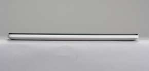 iiyama PCが販売する「8P1150T-AT-FE」は、8型ワイドサイズ液晶を搭載する格安Windowsタブレットだ。SoCにはIntelのAtom Z3735Fを搭載している。10型クラスのタブレットとしてはやや厚みがあるもののフットプリントは比較的小さい。公称の重量は約370グラムだが、実測では360グラムと少し軽かったボディカラーは光沢ホワイト、画面の周囲はブラックだが、裏側からホワイトのカバーを被せたような構造になっている。ホワイトの表面は光沢仕上げで、やや指紋がつきやすい。それほど高級感はないものの、実際に手で持ったときに凹んだりしなったりすることはなく、堅牢性に不安は感じない。