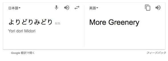 今回は「よりどり」が「More」に、「みどり」が「Greenery」に訳される結果となりました。よりどりみどりは漢字にすると「選り取り見取り」、多い選択肢の中から自由に選べることですから一対一で英語にするのは難しいのかもしれません。