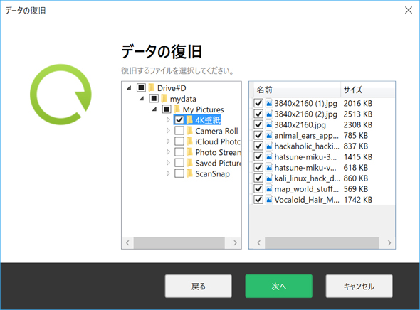 バックアップしたファイルは、指定した共有フォルダ以下に「ASUSTOR\コンピュータ名@ユーザー名\Drive#ドライブ名」の下にフォルダの構成そのままの形で保存されている。バックアップから復旧する場合は、エクスプローラーなどから直接コピーするか、あるいはASUSTOR Backup Planの「復旧」を使用する。