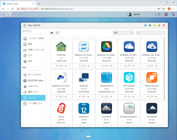 さらに、ASUSTOR NAS自体のバックアップ機能もある。標準機能であるAmazon S3へのバックアップの他、DropboxやGoogle Drive、Microsoft OneDriveなど一般的なクラウドストレージサービスを利用したバックアップ用パッケージが一通り用意されている。災害対策まで考えるときには是非検討してほしい。