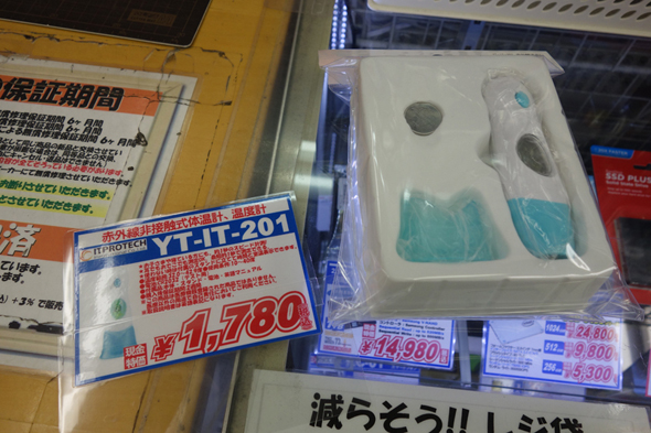 その他、赤外線非接触式の体温計「YT-IT-201」(税込み1780円)や、ワイヤレススピーカーやFMラジオ機能等の機能がついた多機能2000mAhバッテリー「RS-E515」(同1480円)なども特価品としてスポット入荷している。