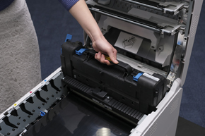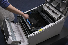 LED方式により、プリント部分がシンプルな構造となっている点も見逃せないポイントだ。何より自己メンテナンスが楽に行える。トナー交換や紙詰まり処理などのトータル時間が減少するとともに専門の保守・サポートへの連絡が減るためプリンタを使用できないダウンタイムを大幅に削減できる。