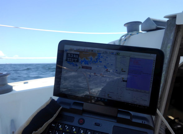 ただし、検証中において晴天の洋上で使用する機会があったが、ディスプレイパネルが光沢タイプであったため、空の光を反射してとにかくディスプレイが見にくい。バッテリー駆動時間を長くするにはディスプレイの輝度を抑えるのが上策だが、画面内容が見えないことにはどうしようもない。そのため、本機を屋外で使うときはほぼ全期間において最高輝度で使うことになった。