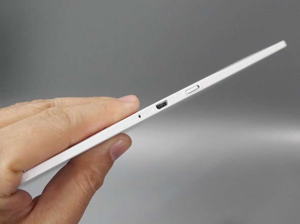 さて、そんな本製品を前知識ゼロで使ってみて、驚くことは主に3つある。1つはボディーの薄さと軽さだ。今回試用しているA5モデルは、現行のiPad(第7世代)とほぼ同じ面積ながら、厚みはiPadの約7.9mmをはるかに下回る約5.9mmとなる。現行スマートフォンのほとんどの機種より薄く、バッグの中に入れておくと、書類の間に挟まって行方不明になりかねない。