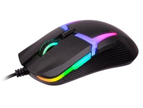 USB接続に対応したゲーミングマウスで、側面ボタンを両側面に2ボタンずつ備えた左右対称デザイン筐体を採用。LED発光ギミックやマクロ登録機能なども備えた。センサーには解像度1万6000DPIのPixArt製光学式センサーのPMW-3389を採用している。