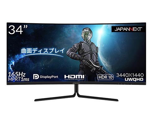 リンクスインターナショナルはこのほど、JAPANNEXT製となる湾曲設計のウルトラワイド34型ゲーミング液晶ディスプレイ「JN-VCG34165UWQHDR」の取り扱いを発表、国内法人向けとして販売を開始した。予想実売価格は5万9980円(税込み)。