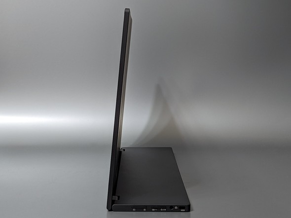 こういったスタンド機構も関係してか、画面下部のベゼルは厚みがややあり、15.6型のモバイルディスプレイとしては全高は高めだ。ノートPCと並べると、画面サイズが同等クラスでも、本製品の方が背が高くなってしまうこともあるだろう。