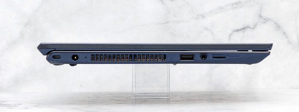 左側面には電源入力端子、USB 3.2 Gen 1 Standard-A端子、イヤフォン/マイクコンボ端子とmicroSDメモリーカード(UHS-I対応)を、右側面にはUSB 3.2 Gen 1 Standard-A端子×2、HDMI出力端子、USB 3.2 Gen 2 Type-C端子と有線LAN端子(1000BASE-T対応)を備える。USB 3.2 Gen 2 Type-C端子はUSB PD(Power Delivery)による電源入力と、DisplayPort Alternate Modeによる映像出力にも対応する。