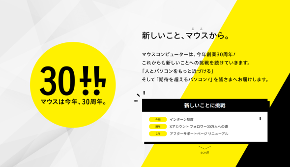 象徴的ともいえるのが、30周年を迎えた2023年度に「新しいこと、マウスから」をキーメッセージに、年間30件を目標にして新たなことに「挑戦」したことだ。30周年という数字に合わせて、社外向けに30件、社内向けに30件の新たなチャレンジをしている。