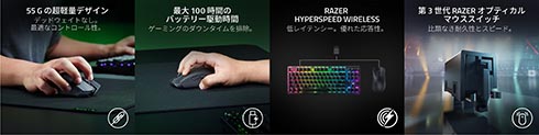 付属USBドングルによるワイヤレス接続に対応したワイヤレスゲーミングマウスで、同社製「Razer DeathAdder V3 Pro」から約12%軽量化を実現、本体重量は約55gとなっている。同社製のワイヤレス接続技術“Razer HyperSpeed Wireless”にも対応、別売ドングル「Razer HyperPolling Wireless Dongle」を併用することで最大8000Hzのワイヤレスポーリングレートを利用できる。