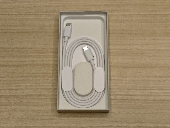 本体をどけると、USB 2.0 Type-Cケーブルが現れる。従来モデルと巻き付け方は異なるが、長さは約1mで変わりない。