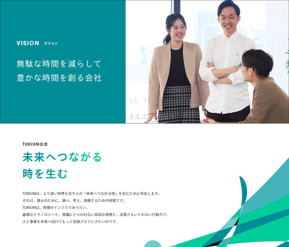TOKIUMを創業したときから、「無駄な時間を減らして、豊かな時間を創る会社」をビジョンに掲げ、TOKIUMという社名も、「未来へつながる時を生む」という意味から付けました。これも、「命は時間」という考え方がベースにあります。