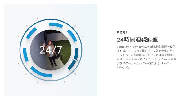 24時間連続録画は、その名の通りRingカメラ(一部)で24時間連続で録画し続ける機能だ。モーション検知ゾーン外で起こったイベントも、常時録画とすることで確認できるようになる。