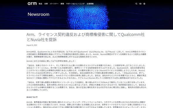 Armは2022年8月にQualcommなど4社に対して米国で訴訟を提起していた。QualcommがNuviaが設計したCPUコアを使うことに当たり、Armは「ライセンス契約の交渉(≒変更)が必要」という立場だが、Qualcommは「既存の契約は、買収後も引き継がれる」との考えなので、平行線もいいところである先述の通り、ライセンス契約の解除は通告から60日後となる。その間にArmとQualcommの間で交渉がまとまれば、契約解除は回避できるだろう。