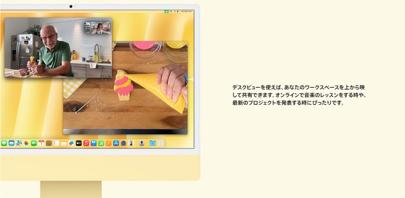 さらに、「ピクチャーインピクチャー(PIP)」機能も備えている。デスクビューとセンターステージカメラを併用した撮影も、システムの機能として実装された格好だ。本人の映像をピクチャーインピクチャーでワイプに入れる使い方でも、後から編集する必要は一切ない。