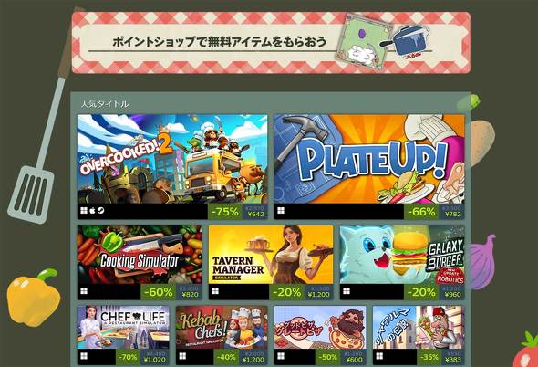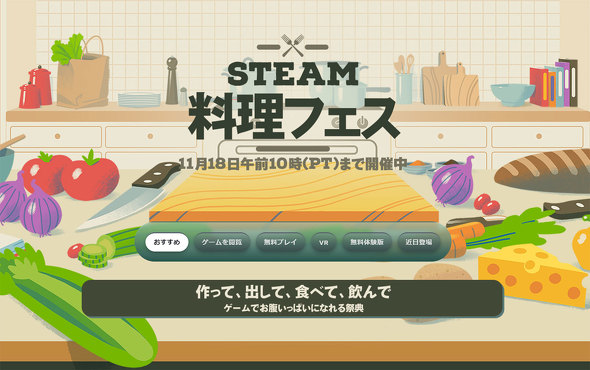 ゲーム配信プラットフォーム「Steam」で「料理フェス」が開催されている。さまざまな料理ゲームが対象のイベントで、新旧のタイトルが値下げされて販売中だ。