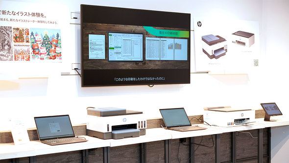 イラストレーターをイメージした「HPのAI PCで新たなイラスト体験を。」コーナーでは、同社のインクジェットプリンタ「HP Smart Tank 7306」と「HP Smart Tank 5105」が配置され、制作したイラストをプリントアウトして持ち帰ることができると、ここまでの話だと、“ありがち”なAIもののイベントに思われるかもしれない。
