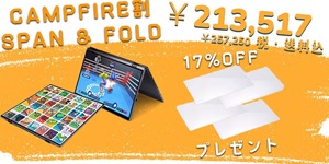 さらに通常価格が13万2650円(税込、送料込み)のところ、30人限定で10万4793円(超早割21%オフ)、さらに50人限定で11万1426円(早割16%オフ)、100人限定で11万9385円(CAMPFIRE割10%オフ)と、早めに申し込むとお得に購入できる。また、この記事中にあるリンクから「DUOONE OLED FOLD」を購入すると、加えて10%オフになるので要チェックだ。