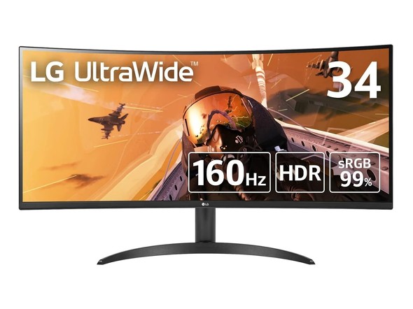湾曲型のゲーミングディスプレイなら、ゲームへの没入感をより一層高められる。「LG ゲーミング モニター UltraGear」(34WP60C-B)は、34型でアスペクト比21:9という湾曲型のウルトラワイドディスプレイだ。3440×1440ピクセル表示に対応し、sRGBの色域カバー率は99%となる。