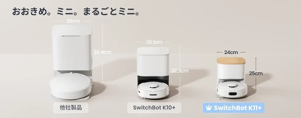 スマートホーム製品を手掛けるSWITCHBOTから、本体の直径が約24.8cmの新型ロボット掃除機「SwitchBot K11+」(以下、K11+)が登場しました。一般的なサイズのロボット掃除機には難しかった家具の下まで入りこんで掃除できて、ごみステーションもコンパクトと、まさに日本の手狭な住宅にぴったりな製品です。しばらく筆者宅で使ってみたので、試用レポートをお届けします。